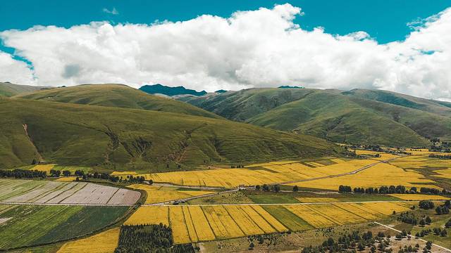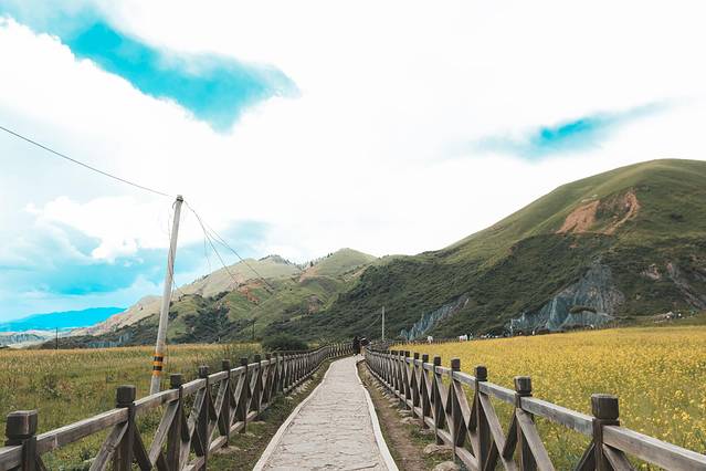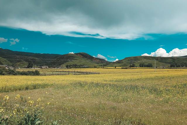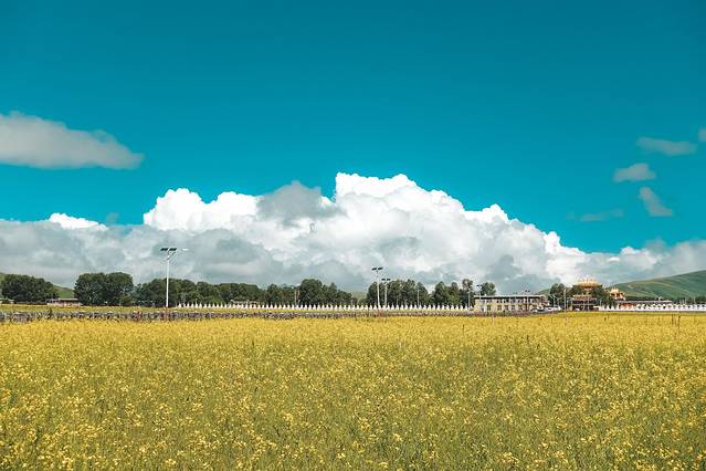 花开 道孚 ,7月的 甘孜 变成了油菜花的海洋,从 道孚 县城出发,驱车一个多小时来到了 泰宁 镇,旁边的寺庙是惠远寺,这次来正赶上了 四川 甘孜 州 道孚 县的一年一度的赛马节。