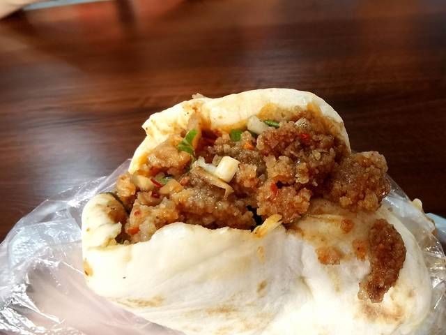 天南地北一个吃法,本来就很扁的饼子了,非得还㮟进些其它的材料。汉堡夹鸡肉,锅魁夹凉粉,肉夹膜夹腊汁五花肉,驴肉火烧夹酱驴肉。