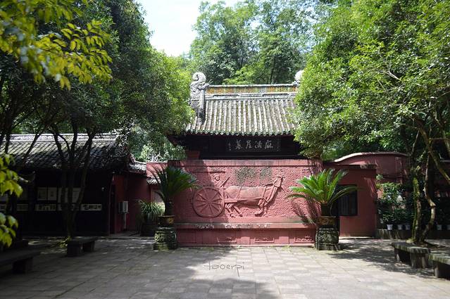 出大佛景区南门,过渔村。乌尤山被凿开成别岛离堆的河,渐称麻浩河。石棺、陶俑、车马伎乐壁画,述说着当年的生活场景。崖墓山后开发成了东方佛都景区,麻浩崖墓前的濠上大桥与乌尤离堆相连。