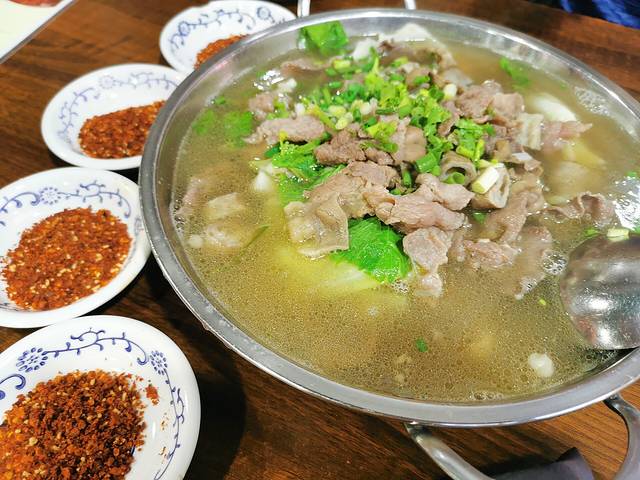 一烫好的跷脚牛肉端出来,是配得干辣椒面加点芝麻的干碟子。汤补食疗,混着胡椒香芹的微辣清香的汤底味道鲜美,一直喝停不下来那种,泡食米饭也是肯梭一些。打底了包包白菜,泡久一些也是入味,牛肉和牛肚尚可,唯有大肠有些绵。跷起脚儿是要舒坦些。