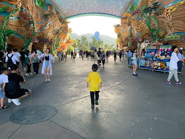 吃完午饭,从酒店出发,乘摆渡车3分钟就能到达海洋王国。