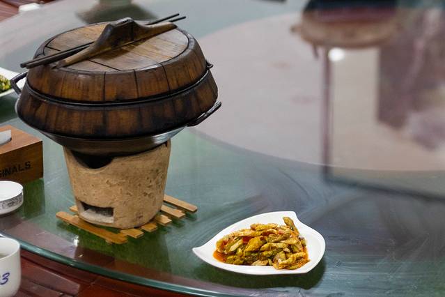 石台一品锅,原本是徽州山区冬季常吃的一道菜。据说最早的一品锅,有七层、九层食材。现在吃到的,一般是经过改良后的一品锅,分五层食材。一般在锅底铺上干笋,第二层铺大块肉,第三层铺油豆腐或其他豆腐,第四层铺肉圆,最后第五层铺上粉丝。整道菜,层次分明、味道鲜美、用料丰富,吃得非常过瘾。