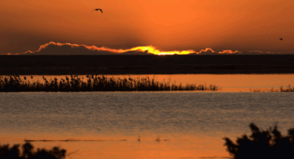 早上我们出发居延海看日出。7点时,天边露出一抹红,慢慢的又出来两块霞云,霞云慢慢变大变红,直到染遍整个天空。7:20分,红日从海天相接处缓缓升起,两三分钟,一轮红日就完全跳出水面,挂在空中,整个湖面一片霞光,伴随着海鸥的飞翔和苇草的摇曳,生机盎然,充满活力。出了居延海我们就直接出发前往策克口岸游玩观赏,在这里逛逛市场,买买纪念品。傍晚,一定要来大漠西怪树林观赏日落,夕阳西下,怪树林在落日的余晖下凄凉透着唯美,令人惊叹不已。