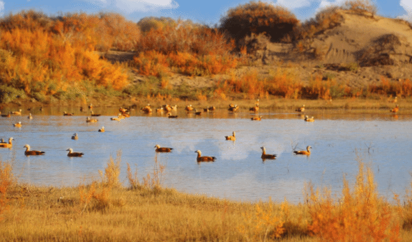 秋风把“胡杨林”染成一片金黄,在白云蓝天之下,耀眼夺目。被一片醉人的金色所笼罩,金黄而又壮美的胡杨林,也因此吸引着数以千计的国内外“游客、摄影家和探险家”,不远千里来到塞外,尽情饱览戈壁沙滩“金色风光”的独特魅力.....