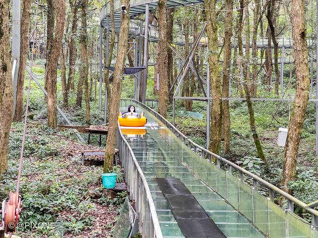 玩累了就可以直接在边上的玻璃漂流直接滑到山脚下了。