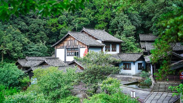 杭州过去,走彩虹高速路再上高速,到龙门古镇大概在40分钟左右,非常近。
