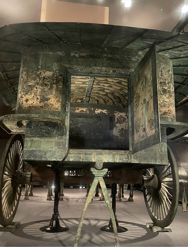 铜车马是我国出土的最大组合青铜器。当你走进细细端详,会惊艳到喘不上气。按照青铜器的模范工艺,这套青铜器不知要多少块模范,模范与模范之间尺寸相差分毫,便无法咬合。车内外的纹饰精美考究,这样的艺术品普通老百姓看一眼都是福气。