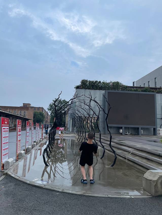 休整了一会儿,三人骑车去798,开始体验艺术家的世界。嘟宝很喜欢这里,热爱电音的宝宝也许在这里找到了共鸣。