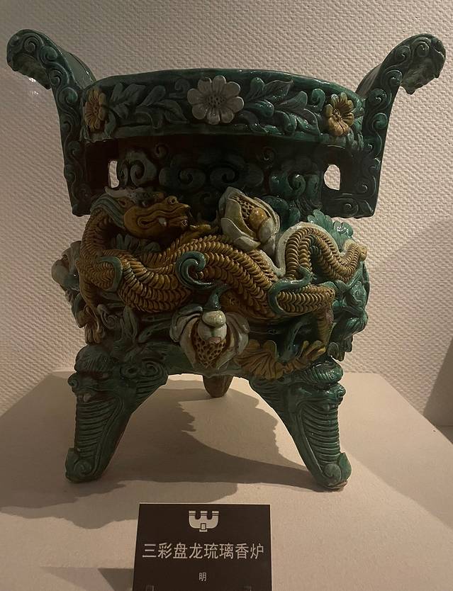 游客适中不算多,喜欢这种听着电子讲解慢慢观赏的感觉。中间小憩咖啡馆翻看了一会儿资料,一个下午的时间还是漏了一个馆没有时间看完。因为时间都留在了最吸引我的馆。就在观复博物馆还嫌弃铜胎珐琅,虽然艳丽但显生涩。没想到在这里,实打实地被惊艳了———琉璃。接下来又有新的学习方向。