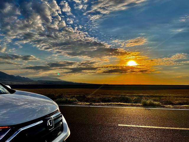 游览一个小时左右出来,悠然的开车下山,在平原处等待日落(日落时间在北京时间22:00点左右),独山子的日落美不胜收。