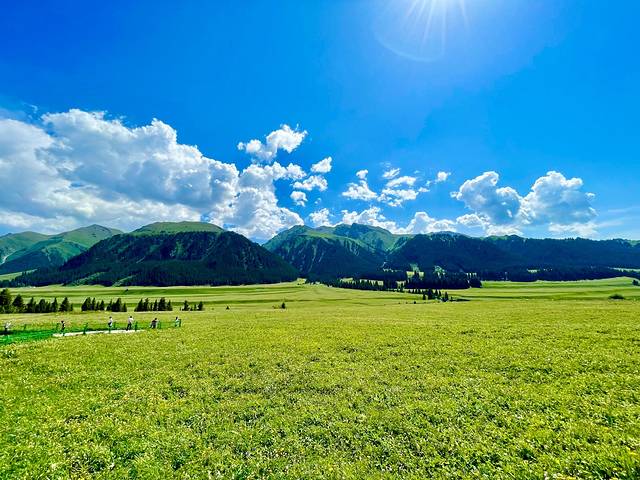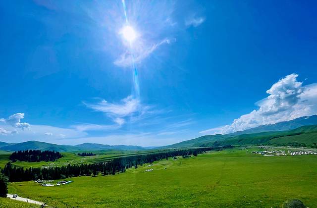 顺着公路而下,一转眼便从皑皑白雪的“冬季”来到了郁郁葱葱的“春天”。《百里画廊》即乔尔玛到唐布拉避暑山庄,这一段新疆省道S315约170km,沿路走来每一步都足以展现春回大地的样子,不仅有蓝天白云、绿意盎然、潺潺流水、云衫挺拔、层峦叠翠、山水相逢等等(词穷了哈哈),还有喀什河的相依,累了在路边找一棵树依山旁水,挡住强烈的紫外线,往地上一躺,深呼吸感受清爽宜人的空气,让人十分惬意。