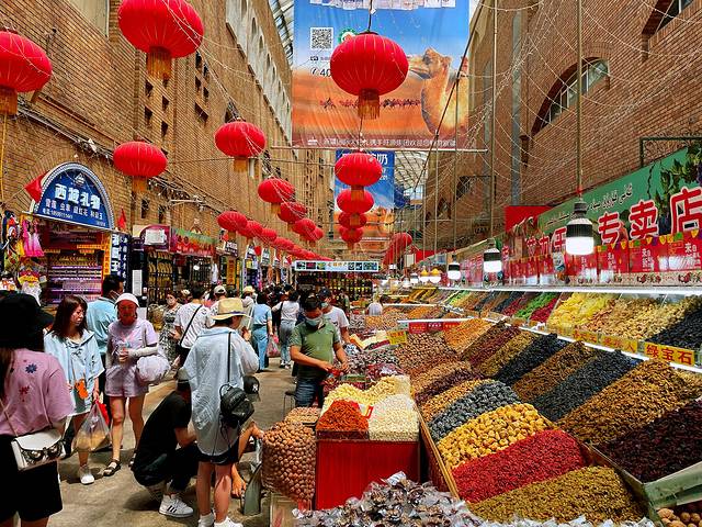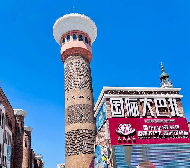 新疆国际大巴扎:世界规模最大的大巴扎(维吾尔语,意为集市、农贸市场),集伊斯兰文化、建筑、民族商贸、娱乐、餐饮于一体,是新疆旅游业产品的汇集地和展示中心。2004年入选乌鲁木齐市“十佳建筑”,具有浓郁的伊斯兰建筑风格,在涵盖了建筑的功能性和时代感的基础上,重现了古丝绸之路的繁华,集中体现了浓郁西域民族特色和地域文化。