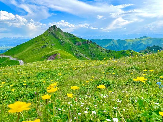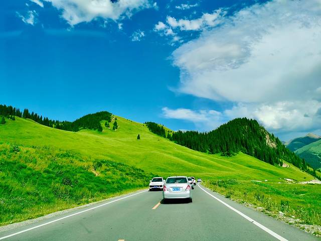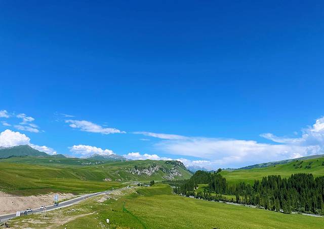 从百里画廊返回乔尔玛出来之后,继续往那拉提的方向前行,一路播放着《那拉提的养蜂女》很是有意境,仿佛前方就要到达那一片神秘的国土,沿途一路走来中间有一段上山路,属于森林景观,感觉很平凡没有十分惊艳的地方,当走到玉什灭尔克达坂的时候,就可以拿出你的旅途记录设备,开始体验独库公路北段最惊艳的山峰与蓝天白云交织在一起的魅力。(这里有点点小遗憾,没有带上无人机) 废话不多说,上图:
