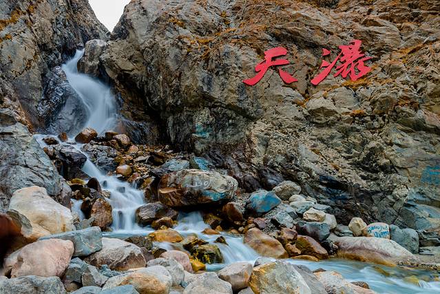 经过两个多小时的跋涉,到达了独库公路沿途第一个奇观景点:“天瀑”,天瀑其实是冰川融水,雪水冰凉刺骨,与经历血水洗礼的彩石一起,形成了一道令人惊叹的奇观。当时由于观赏的人太多,我们并没有近距离亲近自然,而是开车前行目光一扫而过,遗憾未能留下了一张合照。