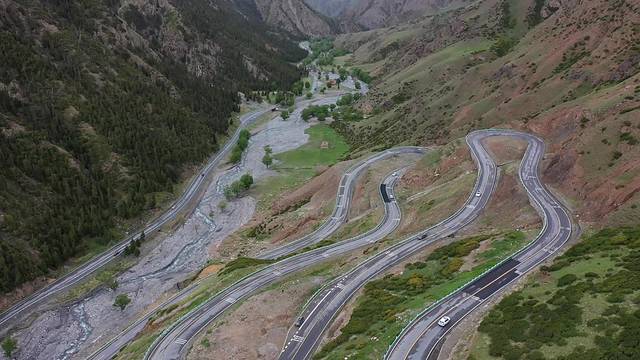 独库公路:北起克拉玛依市独山子区,纵贯天山南北,南端连接阿克苏地区库车市,全长561公里,即217国道独山子至库车段。由于其过半以上地段横亘崇山峻岭、穿越深川峡谷,连接了众多少数民族聚居区,因此被《中国国家地理》评选为“纵贯天山脊梁的景观大道”。