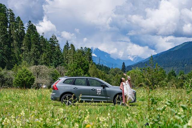 沃尔沃新款XC60的北欧风和鲁朗山景里的北欧感简直绝搭。值得一提的是,它配备的City Safety城市智能安全系统在林间小路上也能派上用场,因为就算有牛、羊、马儿突然从林间窜出,它都能实现紧急刹车和避让,让人安全感十足。