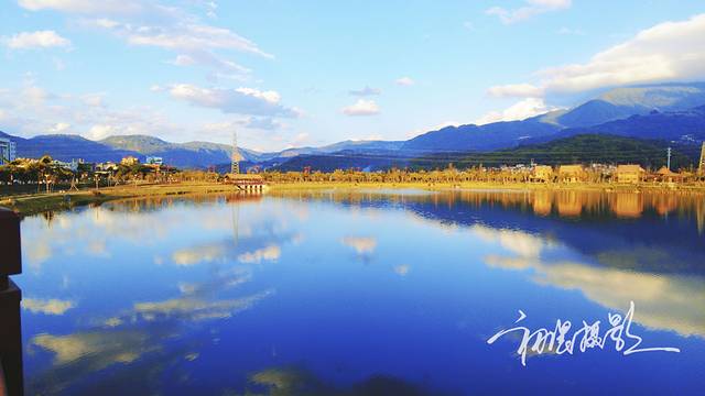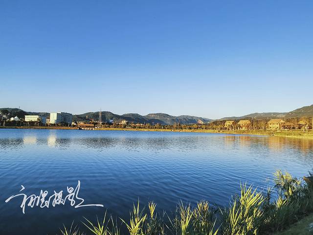 湖面上万里无云,蓝天绿水渲染整个大地。