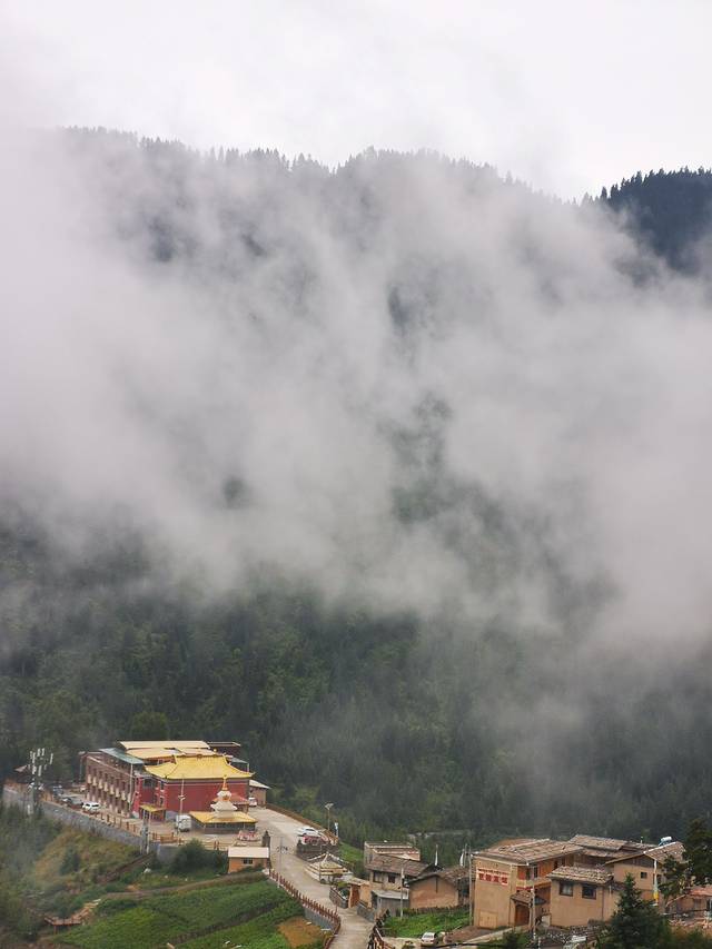 忐忑中早起去达日观景台看晨间的扎尕那,然而,天公不作美,今天的云特别厚,啥也看不见!等了好长时间也没等到云层散开,只好带着遗憾下山吃早餐。