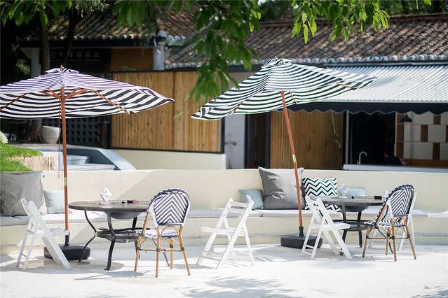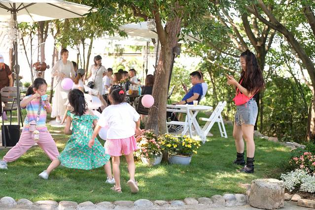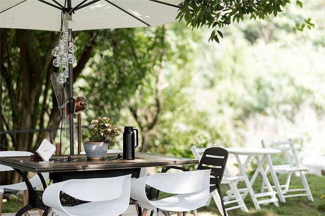 店里的所有布置和设计,都由徐莉亲自完成,与自然融为一体的户外花园,可听蝉鸣鸟叫,孩子在绿色的草坪上自由奔跑玩耍,大人们则在树下乘凉闲聊,一家人一下午,感受时光从指缝溜走的闲散和惬意。