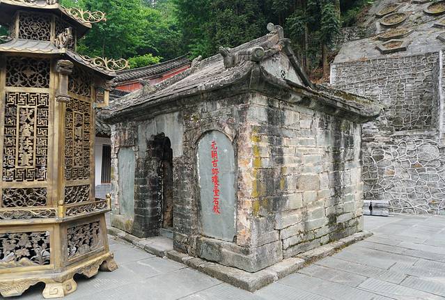 复真观建筑群的最高处,耸立着明代建造的太子殿。太子殿是太子读书处,殿内供奉有铜铸太子读书像,是武当山唯一求学祈福之地。古往今来,有无数少年学子亲临观瞻,以建树学业的恒心和信心,现在很多望子成龙的家长也常来这里敬香祈求子女成材、学业有成。