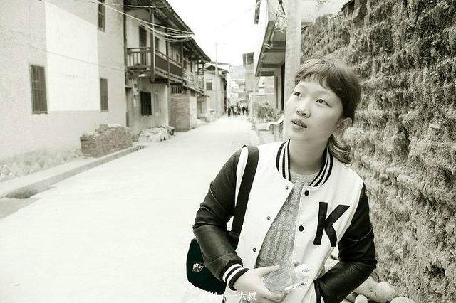 鹅卵石上,古道边,认真读书的姑娘最美丽! 话说背后某个角落还有个大亮点!O(∩_∩)O哈哈~