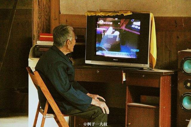 一位老人独自看着电视节目,他靠的很近很近,不知道是怕听不清还是看不清,或是都有吧,不知道几十年后自己也是否会这样每天孤独的坐在电视机旁