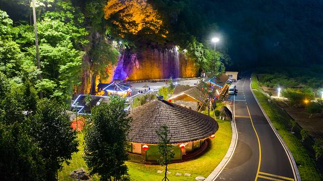 躺在床上打开窗就能欣赏山水风景,夜幕降临,灯光亮起,房车营地本身也是一道很美的夜景。美美地睡一觉,再去玩漂流,不仅精神饱满,还能避开客流高峰,玩得更痛快。