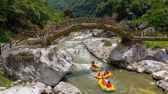 夏天是玩水的季节,漂流是最受欢迎的项目之一,在湖北宜昌,有一处旅游度假胜地,这就是位于兴山高岚的朝天吼景区,光听这个名字,就有一种痛快淋漓的豪迈。朝天吼景区好玩的项目很多,最有名的就是漂流,很多人夏天来此,就是奔着漂流慕名而来。朝天吼漂流全长6.5公里,148米的落差,让漂流的过程中急流相接,跌宕起伏,充满了挑战和刺激。