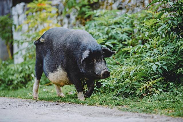藏香猪,又称“人参猪”,它们对环境要求很苛刻,基本上是喝泉水、吃山珍长大的,有幸,在巴卡村遇见了正在河边觅食的藏香猪。