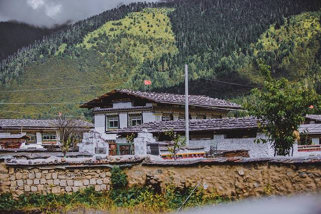 我们来的时候淅沥沥哗啦啦的下着小雨,人不多,雨让原本静谧的村庄显得更加的清幽与恬静。巴松措最好的季节是秋天,秋高气爽,白云缭绕,从湖岸至山岭,漫山遍野,层层晕染,美不胜收,是摄影爱好者的天堂。如果你也去巴松错,一定要去错高村看看