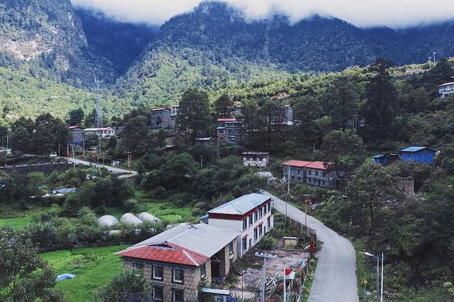 村民的房子也是极具特色门巴民族特色小楼,一楼门面,二楼自主,三楼民宿,住的也是怡然自得。村子旁边是勒布沟景区,站在民宿三楼,即可看高山流水,也可云卷云舒。