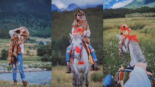 走至观望台尽头,居然有种漂浮在草原之上的错觉,遥望远处神山,蓝天白云尽收眼前云在心头,心在云间。然而它又是深刻的、艺术的,举手抬足间,无不渗透着艺术的气息~