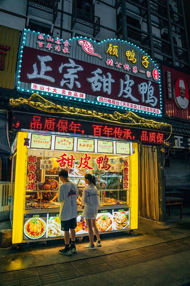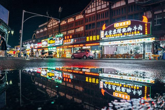 从成都自驾2h便可以达到乐山,乐山真是一个好吃客的美食天下,第一站当然是也是:吃!比较推荐的是最热闹的小吃街「张公桥」,这里的店铺都是明清仿古门廊式,最喜欢是夜幕降临下,街灯亮起时小吃街的热闹与浪漫~在这里可以体验到便宜实惠的乐山美食,也可以感受到乐山人的热情好客~