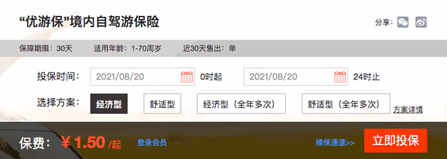 成都与乐山和眉山的车程都相对近且方便,为了更好的体验我的建议是自驾,这样不管是一群朋友还是一大家人出行都会更加便捷,相对来说性价比也会更高哦~除了预定好住宿外,常年旅行博主身份带给我的好习惯是购买一份境内自驾游保险,这样会给到出行更多的安心与便利。