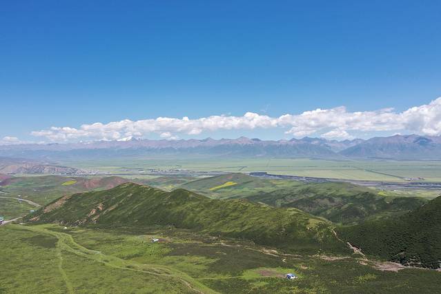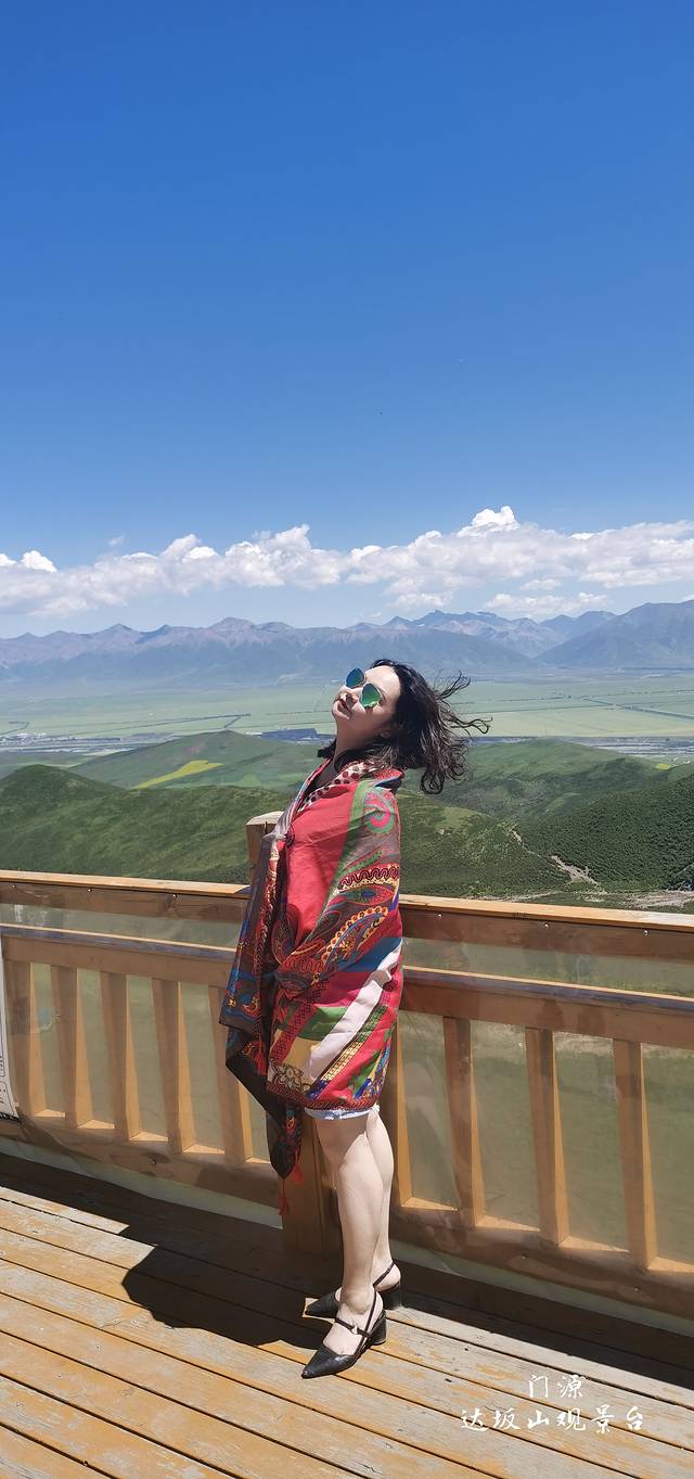 ●饭后,前往【达坂山观景台】,能俯瞰整个门源。远处就是【岗什卡雪山】,视野非常开阔,空气很清洁,能见度好,心情也格外舒畅。
