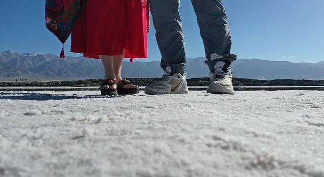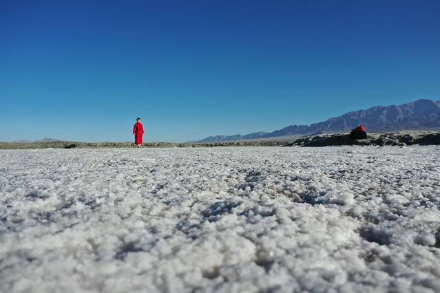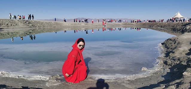 ● 推荐进景区左边的白色盐坝中,也有一个很小的湖,色彩很炫丽;进大门右手边的大湖,拍远山倒影也很漂亮