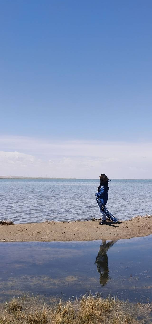 ● 饭后上茶德高速,行驶到德令哈国家湿地公园——【尕海】,被眼前的空灵所震撼到了,路的左侧是一大片广阔的水域,湖水的色彩很舒服。这是做旅行计划准备时,没有准备到的景点,真心被眼前景色迷醉了。于是,在就近右侧的休息区停车(路边没有防护栏的地方,路外面是平整的土地,就有可以停车)。下车后,路下方的涵洞是可以通过的(有几个涵洞,并不是每一处的都能过),通过涵洞前行500米,就是湖边,湖边有一片广阔的沙丘地带。