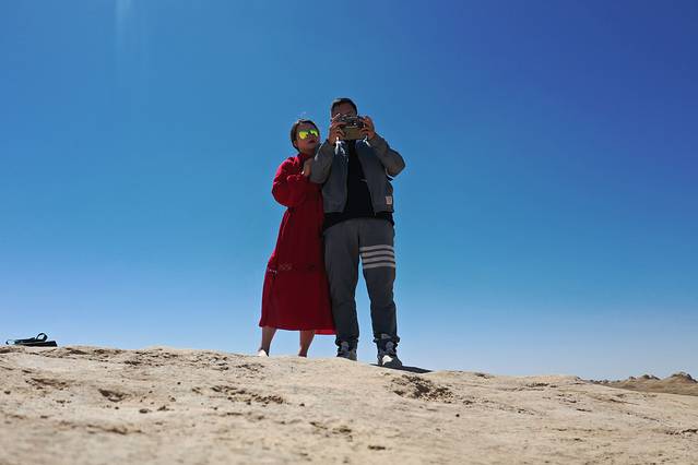 ●由于【U型公路】仍然处于交通管制,我们继续往备选景点【小柴旦湖】走,晚上住宿也在这条路上的『北纬37度星空营地』。