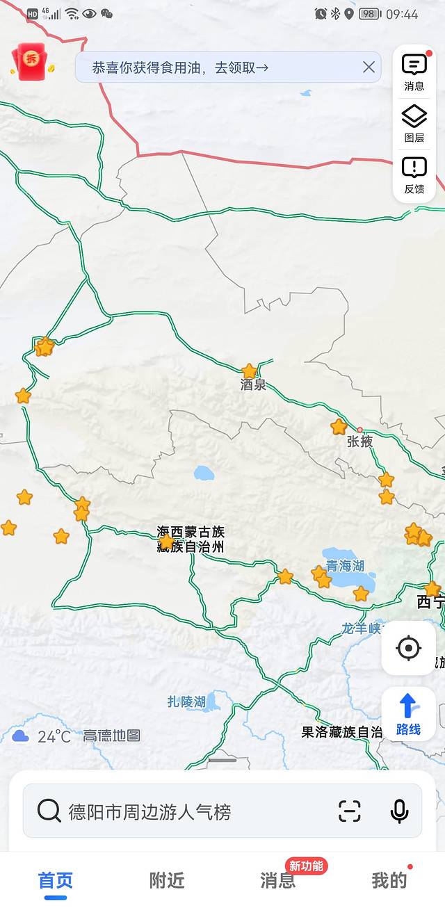 ●往【德令哈】前进的路上,导航显示,【U型公路】交通管制。能想象么,心心念念的信仰地,去不成了,唉,心里拔凉拔凉的,而且在前方【饮马峡收费站】还排着长队,而且是无法绕行,预计等待2个小时。