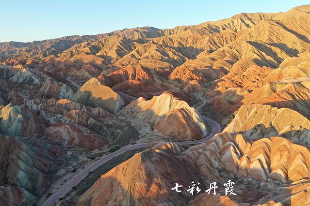●看到了日出,用无人机飞高一些,另一个角度看丹霞,真的是美不胜收,五彩斑斓。这个美丽的画盘,将各种暖色打翻,不断氤氲,编织着绮丽的梦。