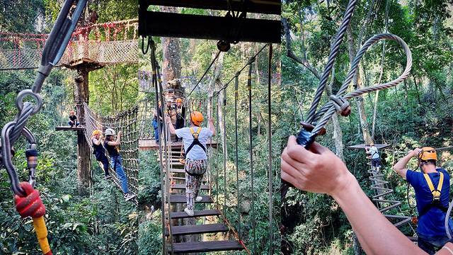 简介:这是西双版纳全州离景洪市区最近的一片原始森林;湄公河水底世界,空中走廊,泼水广场,孔雀山庄,孔雀放飞……都不及直接体验“丛林飞跃”A段+B段,惊险刺激,玩儿的就是心跳,尤其适合公司团建拓展,或者朋友闺蜜并肩作战;当然,在森林公园里,大自然的美景也不容错过,望天树,红光树,胡桐,三尖杉等西双版纳特有且稀有的植物,在这里也能找到踪影