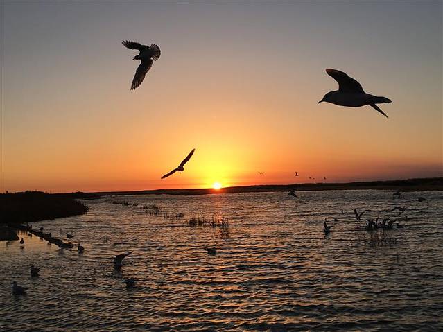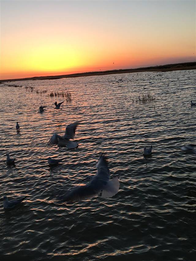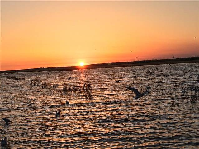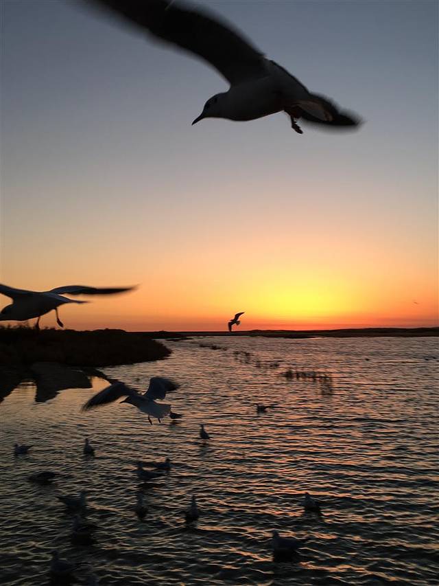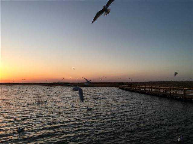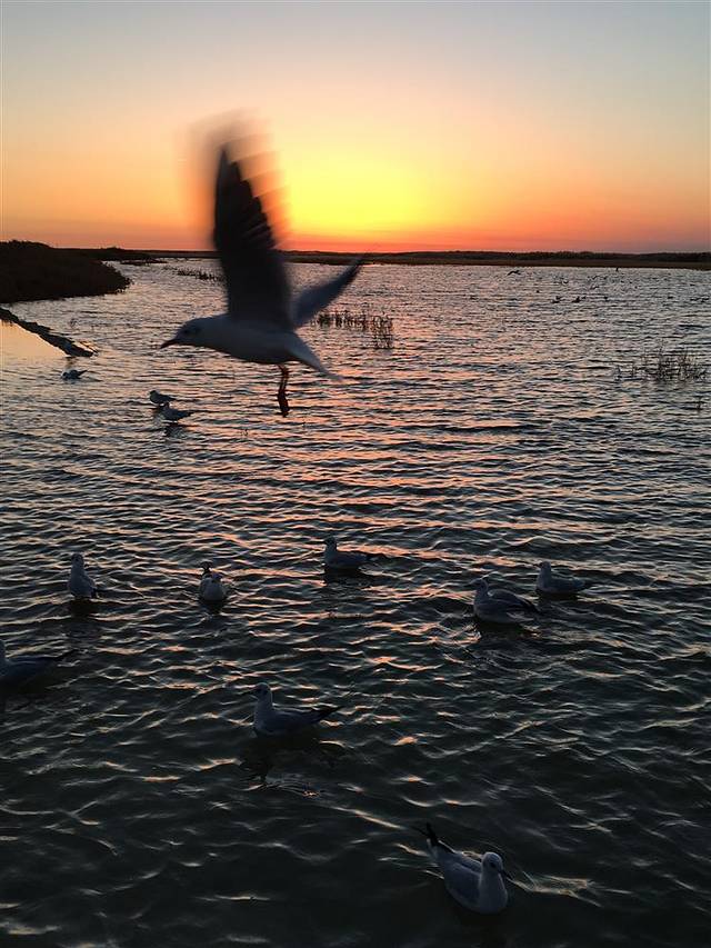 居延海里水草丰美,鸟类成群。早上拍日出,芦苇荡和海鸥成为的搭配,每一张照片都值得留念