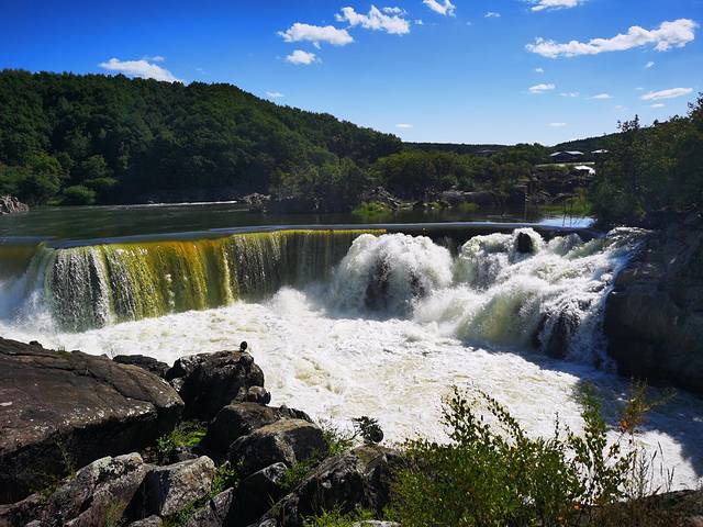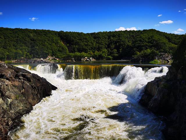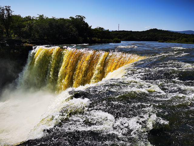 吊水楼瀑布这里上午十点有跳水表演,镜泊湖一景