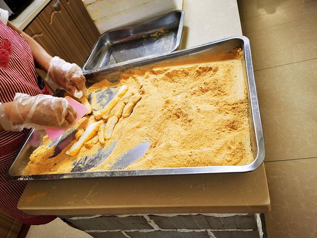 进去以后,先带我们去体验馆,品尝一下当地人做的年糕
