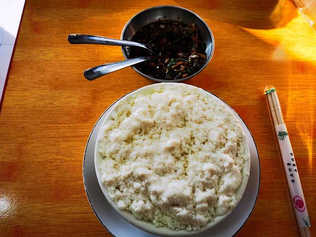 今天是镜泊湖一日游,由于我们晚上要坐火车回京,因此今天的行程就往前赶。早晨7点司机师傅来接我们,我们在师傅到来之前到街上去吃早饭。