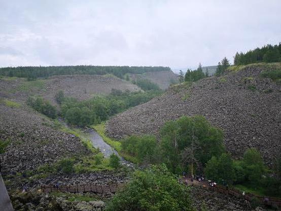 7月26号早上吃过早点,通过咨询酒店老板走了一条刚刚修好的,但还没有正式通车的去阿尔山旅游景区的路,这条路在森林和山间穿梭,路况非常好,大约一个多小时就到了景区门口(行程大约62公里),景区门口有好多酒店,基本都是平房,我是进景区之前找了一家酒店预定好了,好多游客游玩一天出来在找酒店,景区往里走点也有好多旅游酒店,开车也可以进去。阿尔山旅游景区游玩需要1天半,做景区内的旅游车按照从远到近的原则在景区内游玩,游玩路线骆驼峰天池-大峡谷-杜鹃湖-石塘林-回到服务区,阿尔山内修路有些景点不能互通。驼峰岭天池是火山喷发后火山口积水而形成的高位火山口湖,因其所处的这座山远处看像一峰俯卧的骆驼而得名。天池像人的左脚形状,湖面碧浪轻涌,烟波浩淼;湖边巨岩矗立,古树参天。(上下山+游览大约2小时)。大峡谷主体为火山熔岩断裂带,由南向北呈W状,长11公里。峡谷中怪石密布,奇景众多,还分布着基础规模不同的小瀑布,整体景观奇丽雄壮。(游览大约1小时)。 杜鹃湖原名八十一号泡子,是典型的火山熔岩堰塞湖,因每年春季湖岸盛开的杜鹃花而得名,为流动活水湖。盛夏时节,湖中茂盛的水草常常与天上的云彩相映成趣,变幻出水天一体的奇幻景象,让人感叹大自然的万千风情。(游览大约1小时)。石塘林因火山熔岩上长着茂密的树丛并分布着众多的池塘而得名。石塘林为第四纪火山喷发的地质遗迹,石塘怪石嶙峋,姿态万千,其中熔岩丘是目前全国唯一能在这里见到的一种玄武地貌形态。石塘林的地质构造,植被生物均保持原始状态,再现了从低等植物到高等植物的演替过程,具有很高的科研价值。(游览1小时左右)