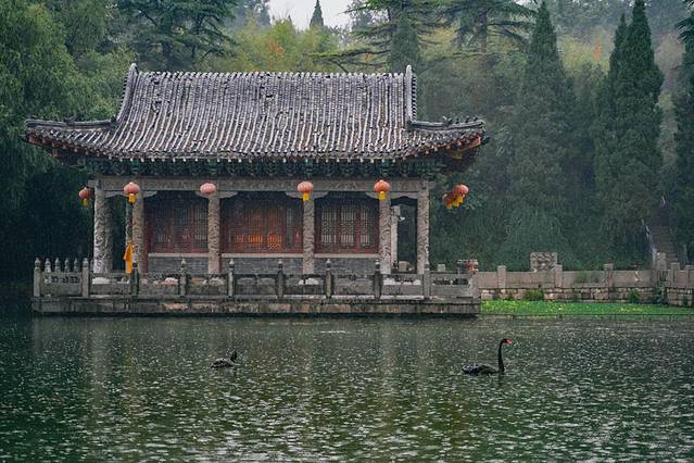 本以为如此清幽之境已然让我诧异万分,却更没想到的是湖中居然有一对黑天鹅!更准确的说是一家。灵动的黑天鹅让整个园林更多了一份仙气。