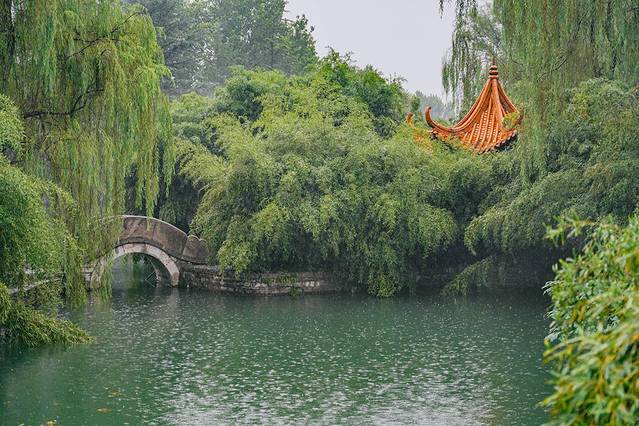 这一次,匆匆的潍坊之行,有幸拜访了其中两个园林,恰逢连日降雨,眼前景象让人分不清时空,仿佛真的闯入了旧时烟雨迷蒙的江南美景之中。