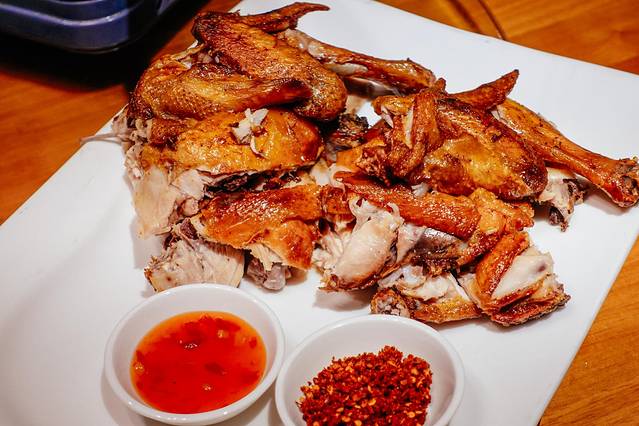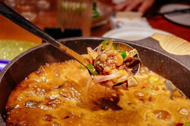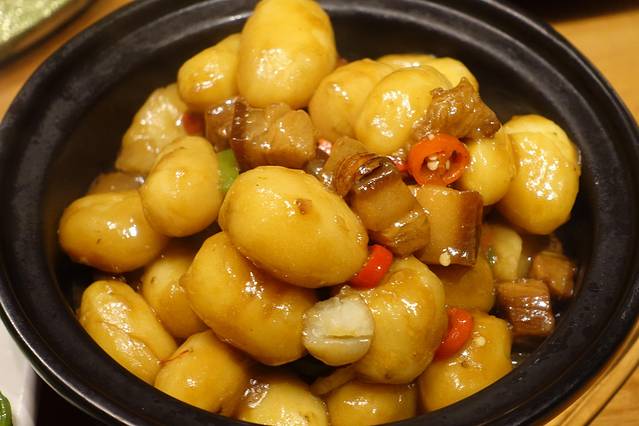 点了几道特色菜,一品绝味庐山石鸡,瓦的烤鸡,有甜辣和麻辣两个酱料,即使不蘸调料我都觉得很好吃,烤制的火候很好,外皮酥脆,里面又能吃到鸡的鲜香来,销魂大片牛肉,肉质很滑很嫩,而且很下饭,生态鱼头炖豆参,深受小伙们的喜爱,一碗鱼汤下肚,真的觉得好满足,庐山土豆与佩奇的故事,这是庐山当地产的土豆,很小,炖着吃软绵绵的很入味,瓦的特色炒饭,不同于以往吃的炒饭,里面加了很多的佐料和配菜,色香味俱全,即使不搭配其他菜,就这一道米饭都能连吃两碗。