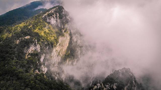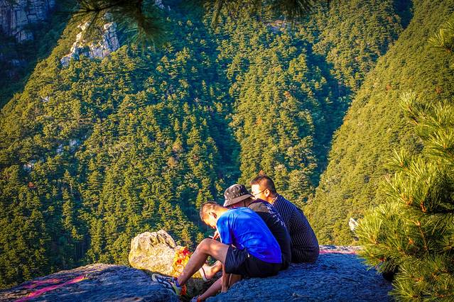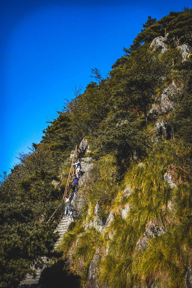 从含鄱口继续前行就来到了五老峰,位于庐山东南,因山的绝顶被垭口所断,分成并列的五个山峰,仰望俨若席地而坐的五位老翁,故人们便把这原出一山的五个山峰统称为“五老峰”。